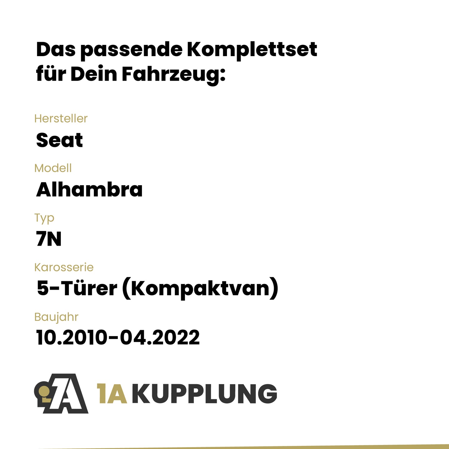 Passt zu Seat Alhambra 5-Türer (Kompaktvan), Baujahr 10.2010-04.2022, Typ: 7N