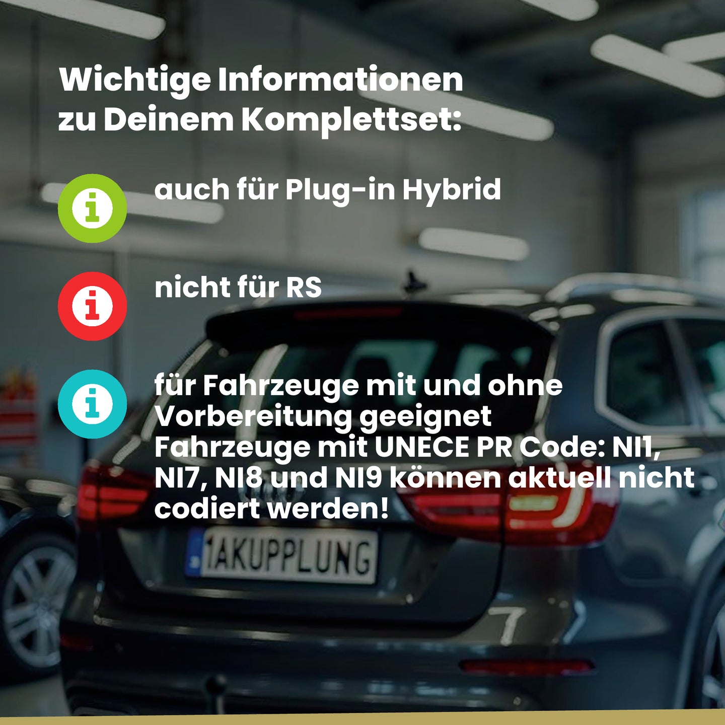 Für Fahrzeuge mit und ohne Vorbereitung geeignet. Fahrzeuge mit UNECE PR Code: NI1, NI7, NI8 und NI9 können aktuell nicht codiert werden!.