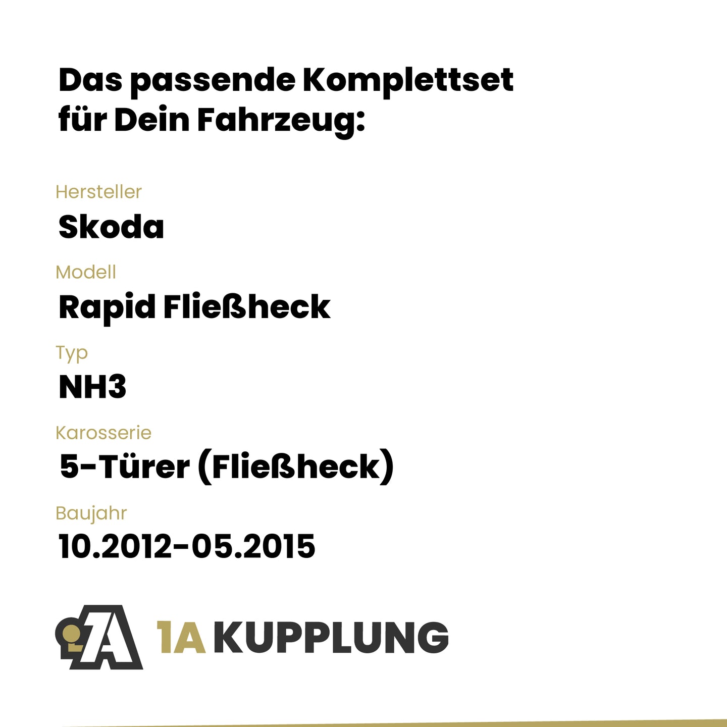 Passt zu Skoda Rapid Fließheck 5-Türer (Fließheck), Baujahr 10.2012-05.2015, Typ: NH3