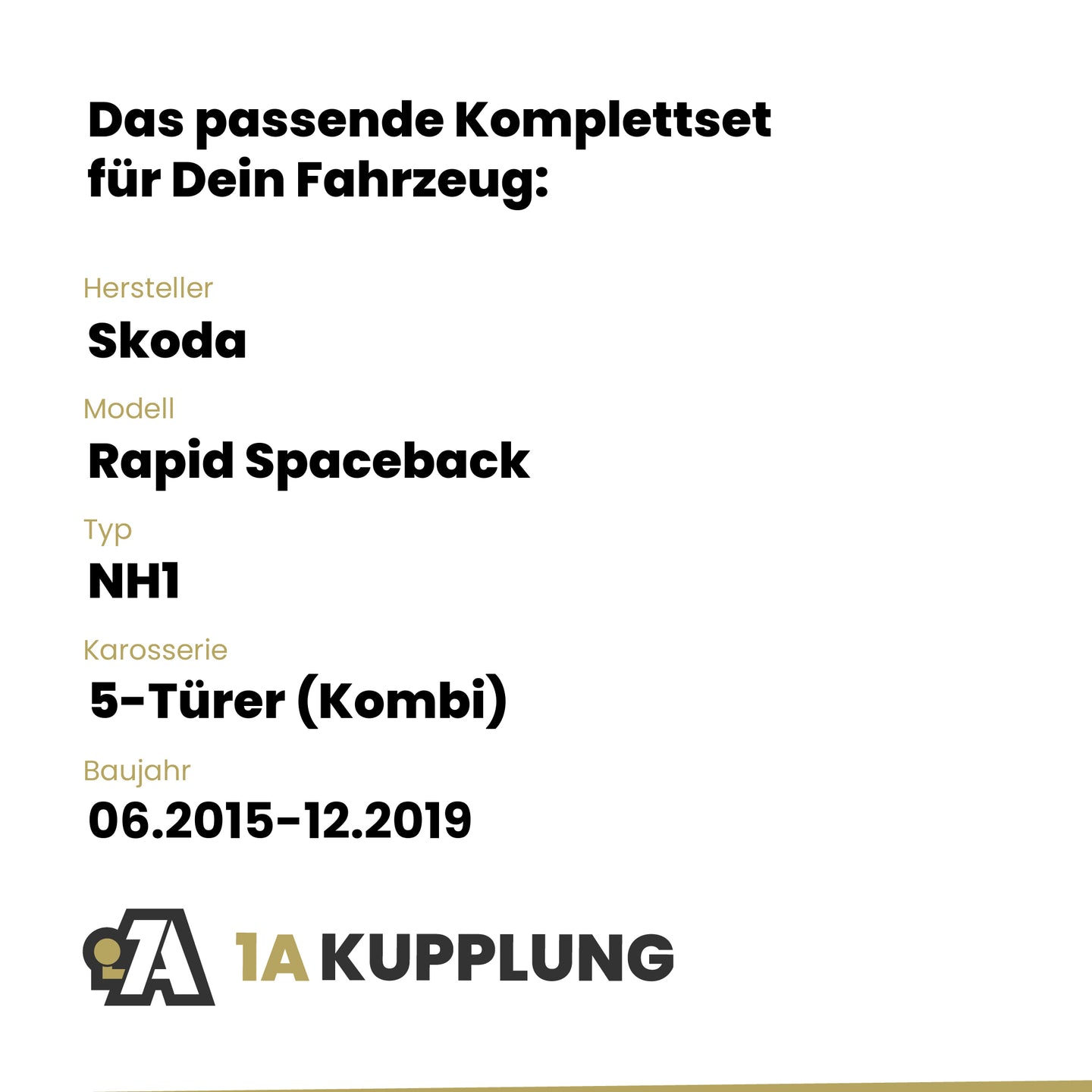 Passt zu Skoda Rapid Spaceback 5-Türer (Kombi), Baujahr 06.2015-12.2019, Typ: NH1