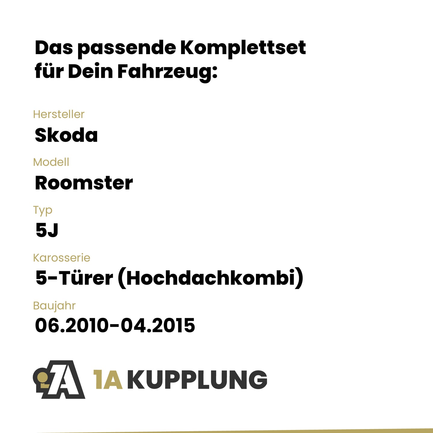 Passt zu Skoda Roomster 5-Türer (Hochdachkombi), Baujahr 06.2010-04.2015, Typ: 5J