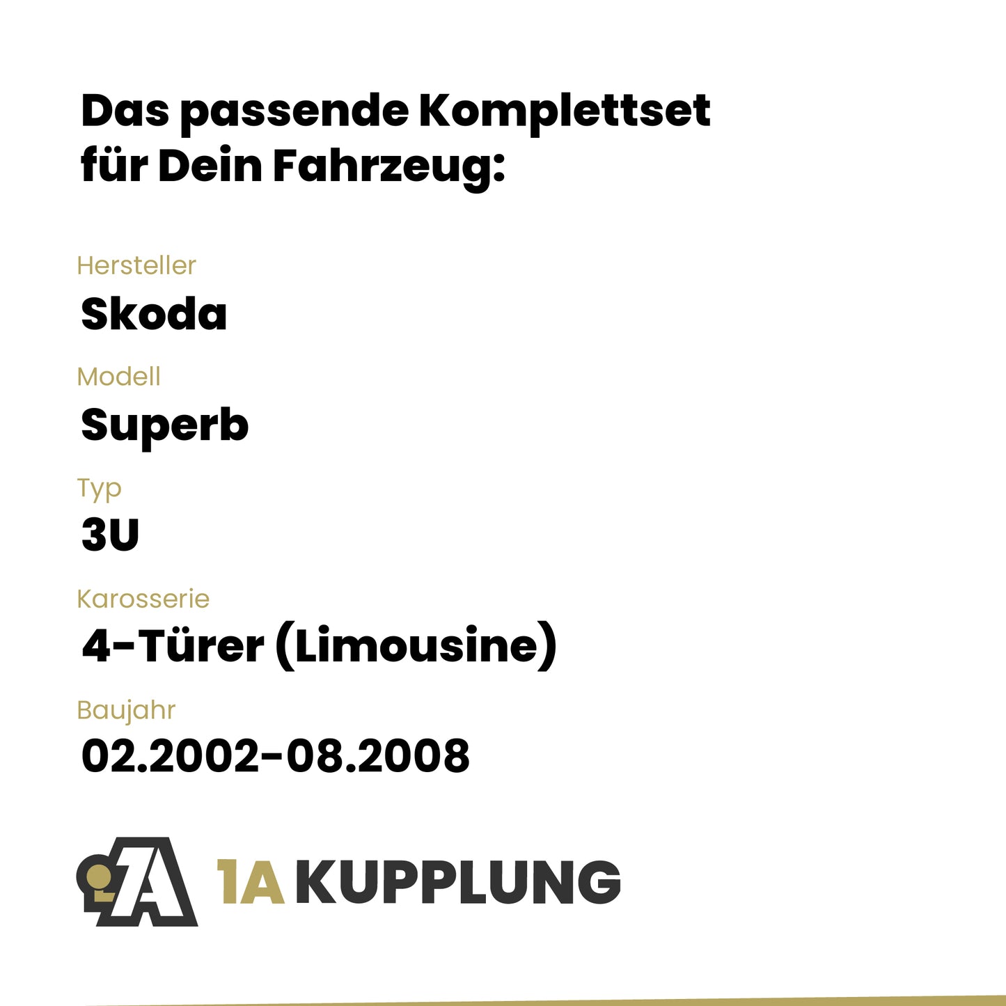 Passt zu Skoda Superb 4-Türer (Limousine), Baujahr 02.2002-08.2008, Typ: 3U