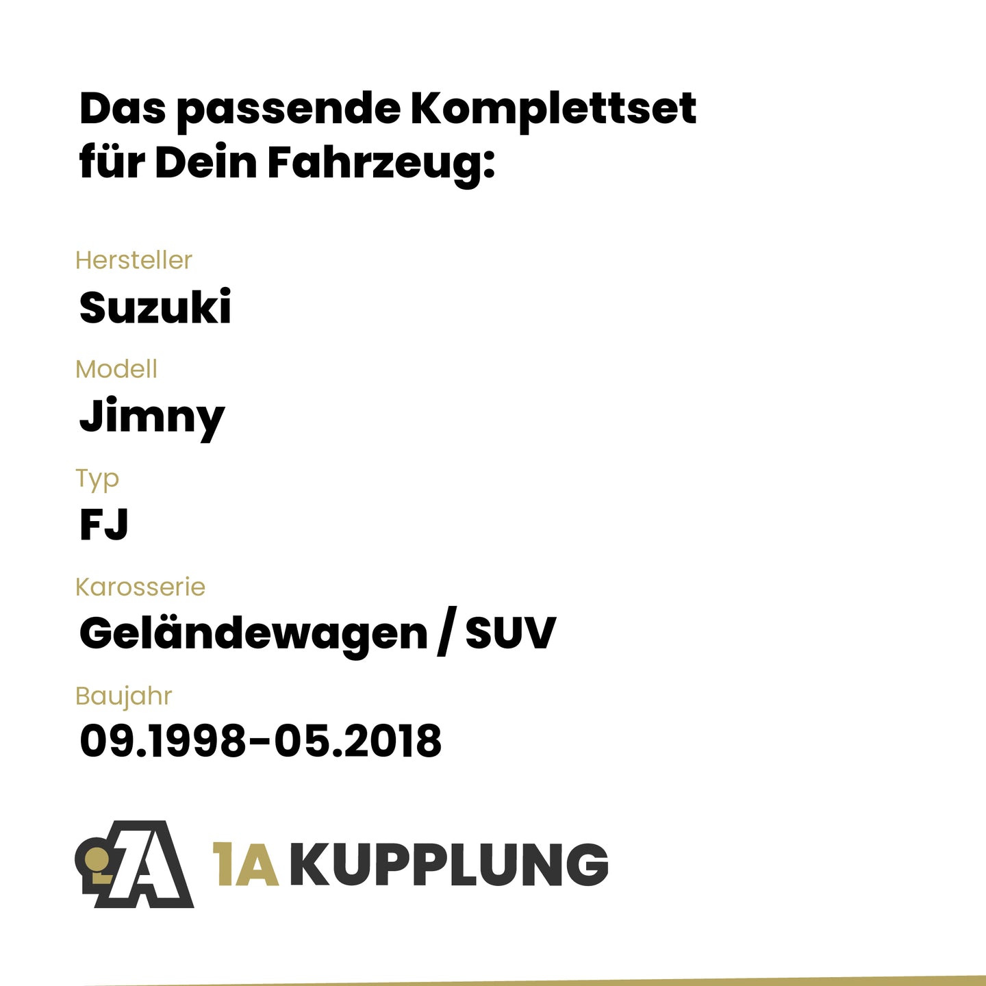 Passt zu Suzuki Jimny Geländewagen / SUV, Baujahr 08.2001-05.2018, Typ: FJ