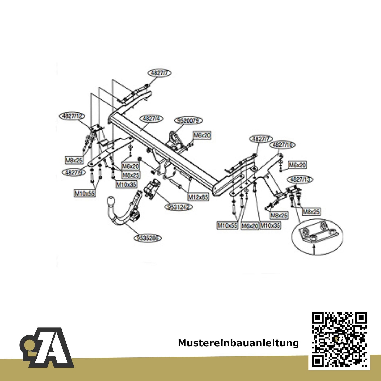 Die Anbauzeit hängt vom Fahrzeugtyp, der gewählten Kupplung und dem Elektrosatz ab. In vielen Fällen ist der Einbau innerhalb von etwa drei Stunden erledigt. Bei aufwendigeren Montagen, etwa bei schwenkbaren Systemen oder schwieriger Fahrzeuggeometrie, kann es auch länger dauern. Besonders der Anschluss des Elektrosatzes sollte von Fachpersonal übernommen werden, um Fehler im Bordnetz zu vermeiden. Die geschätzte Montagedauer für dieses Modell beträgt 1,25h. Diese Angabe richtet sich an Fachwerkstätten und ist ein Richtwert – je nach Fahrzeugmodell und Elektrosatz kann es etwas schneller oder langsamer gehen.