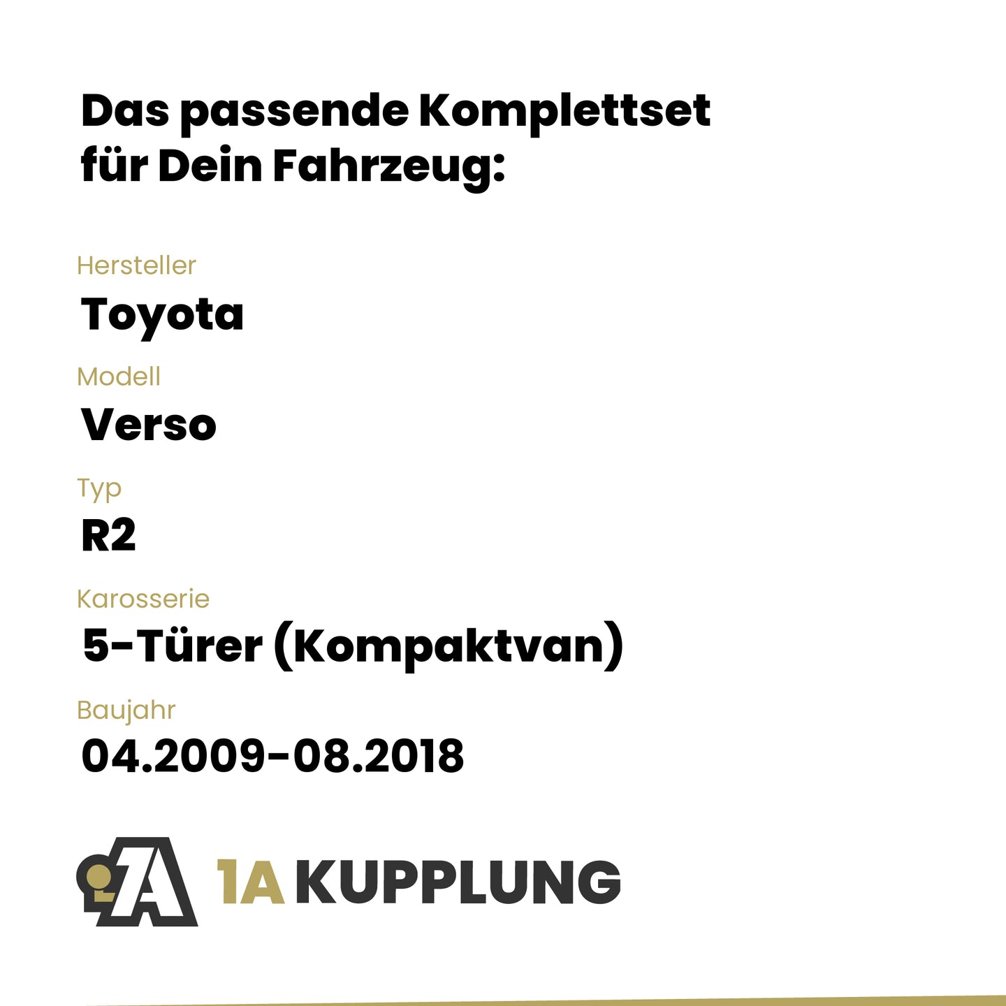 Passt zu Toyota Verso 5-Türer (Kompaktvan), Baujahr 04.2009-08.2018, Typ: R2