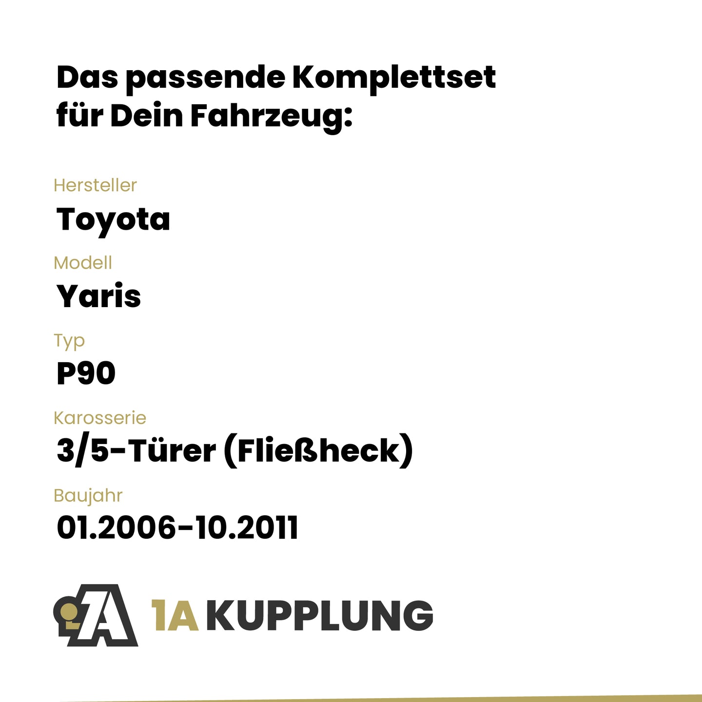 Passt zu Toyota Yaris 3/5-Türer (Fließheck), Baujahr 01.2006-10.2011, Typ: P90