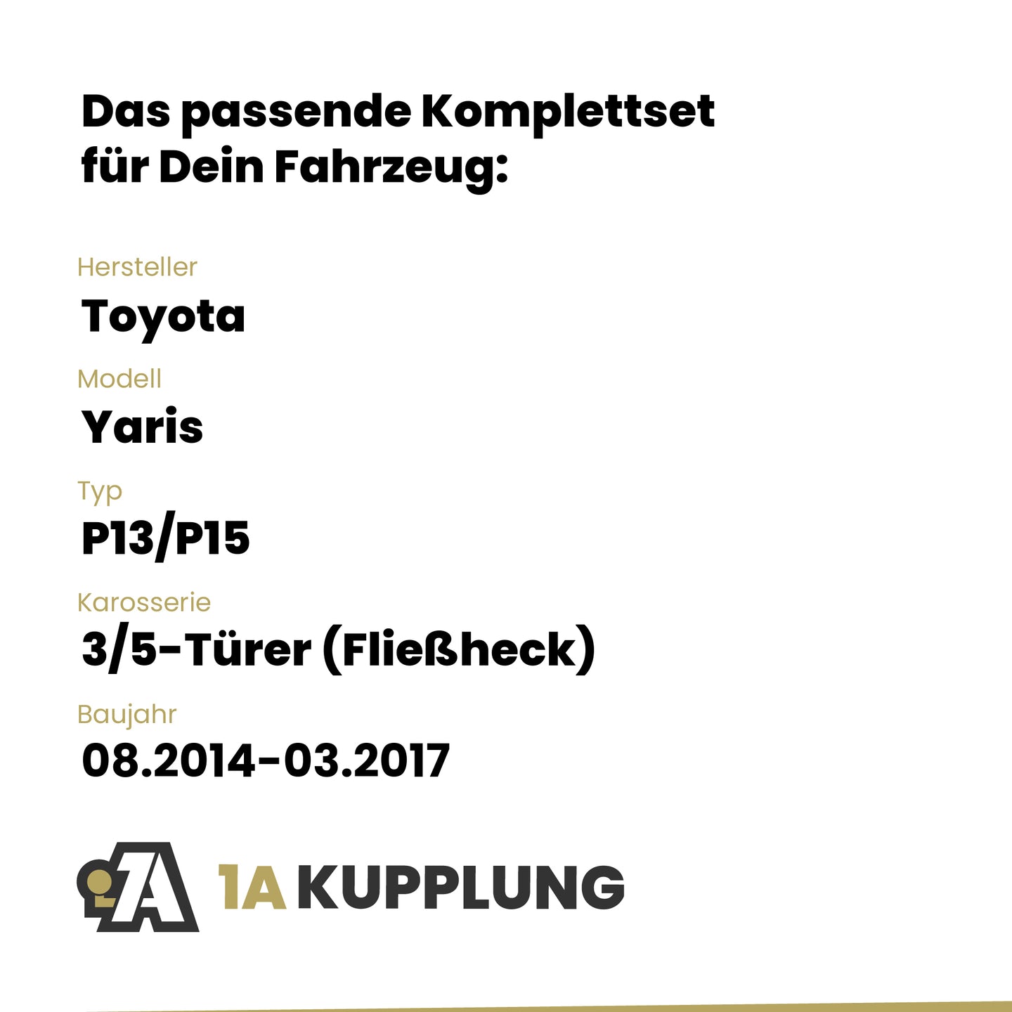 Passt zu Toyota Yaris 3/5-Türer (Fließheck), Baujahr 08.2014-03.2017, Typ: P13/P15