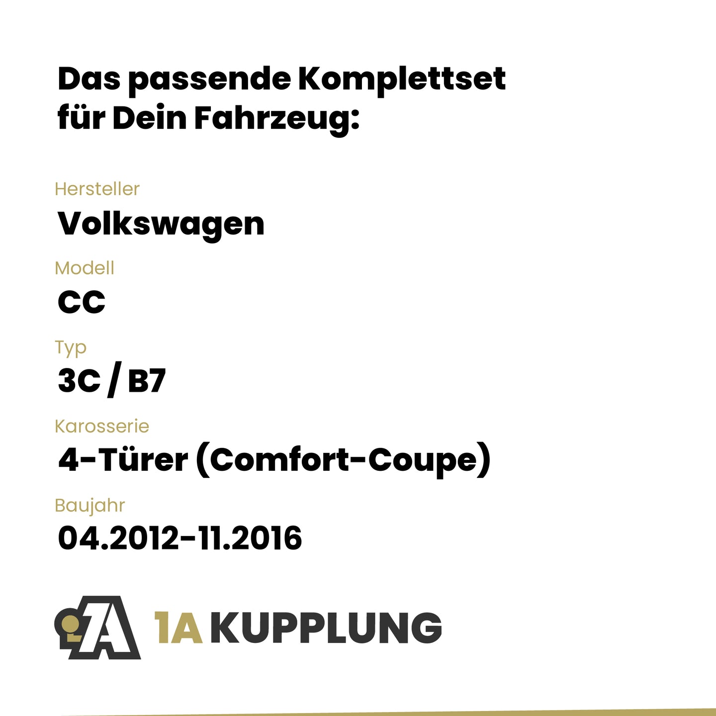 Passt zu VW CC 4-Türer (Comfort-Coupe), Baujahr 04.2012-11.2016, Typ: 3C / B7