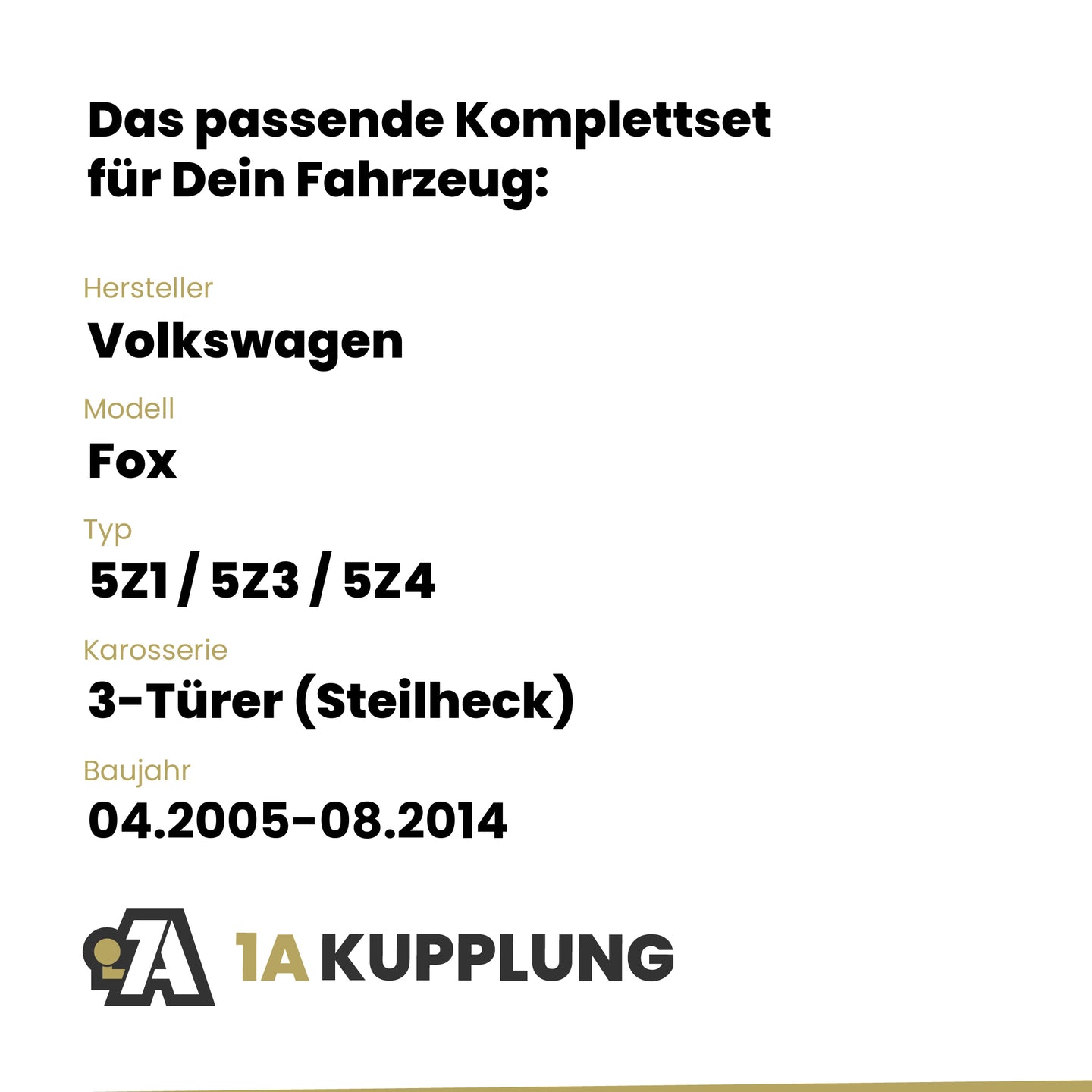 Passt zu VW Fox 3-Türer (Steilheck), Baujahr 04.2005-08.2014, Typ: 5Z1 / 5Z3 / 5Z4