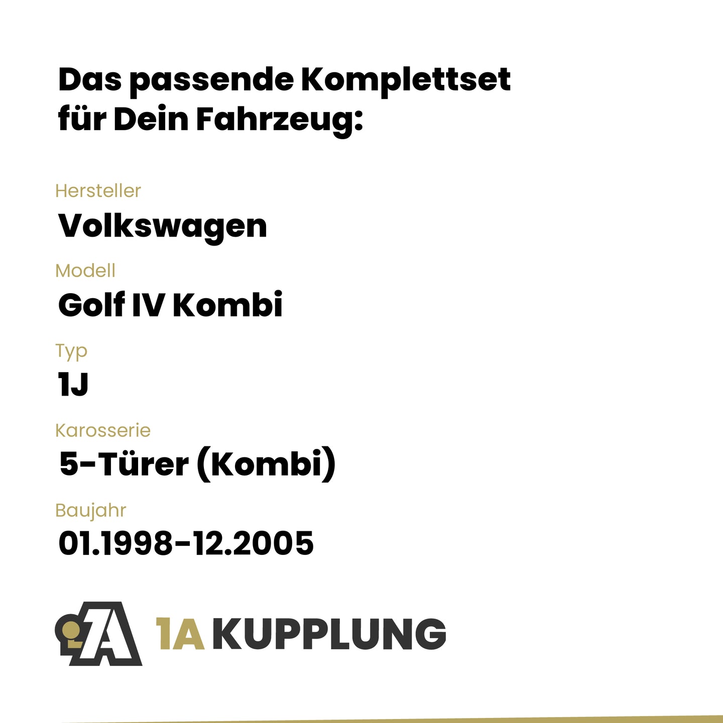 Passt zu VW Golf IV Kombi 5-Türer (Kombi), Baujahr 01.1998-12.2005, Typ: 1J