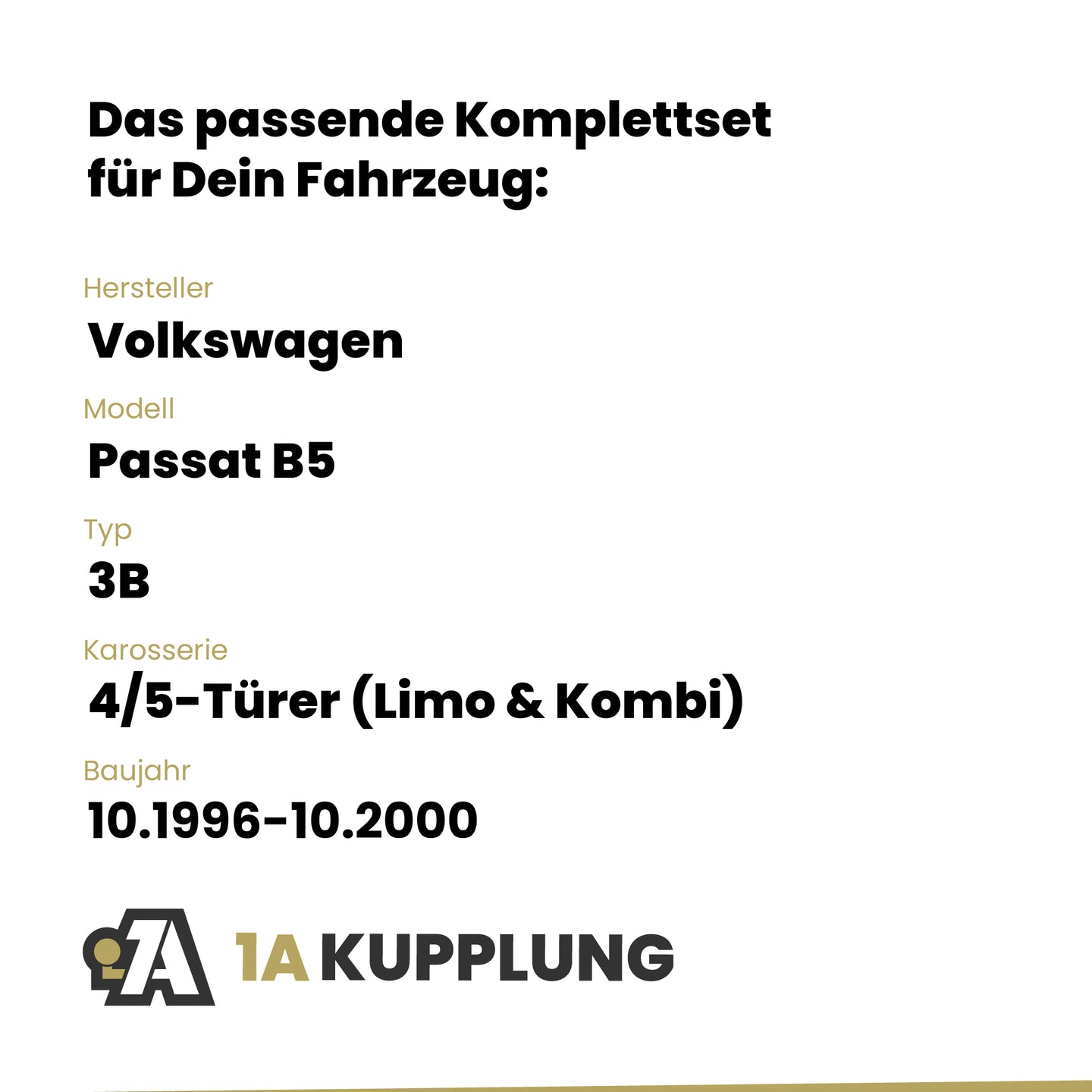 Passt zu VW Passat B5 4/5-Türer (Limo & Kombi), Baujahr 10.1996-10.2000, Typ: 3B
