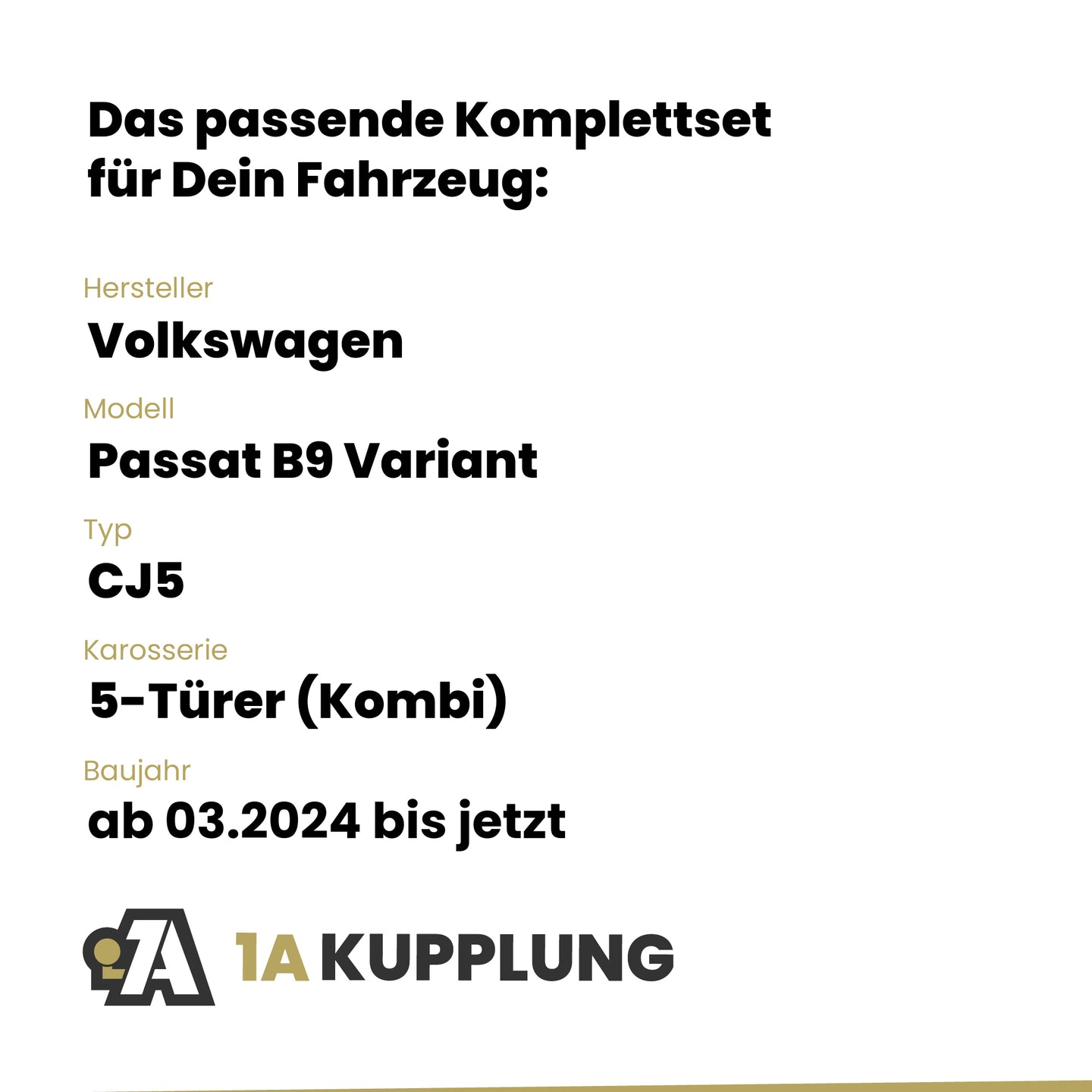 Passt zu VW Passat B9 Variant 5-Türer (Kombi), Baujahr ab 03.2024, Typ: CJ5
