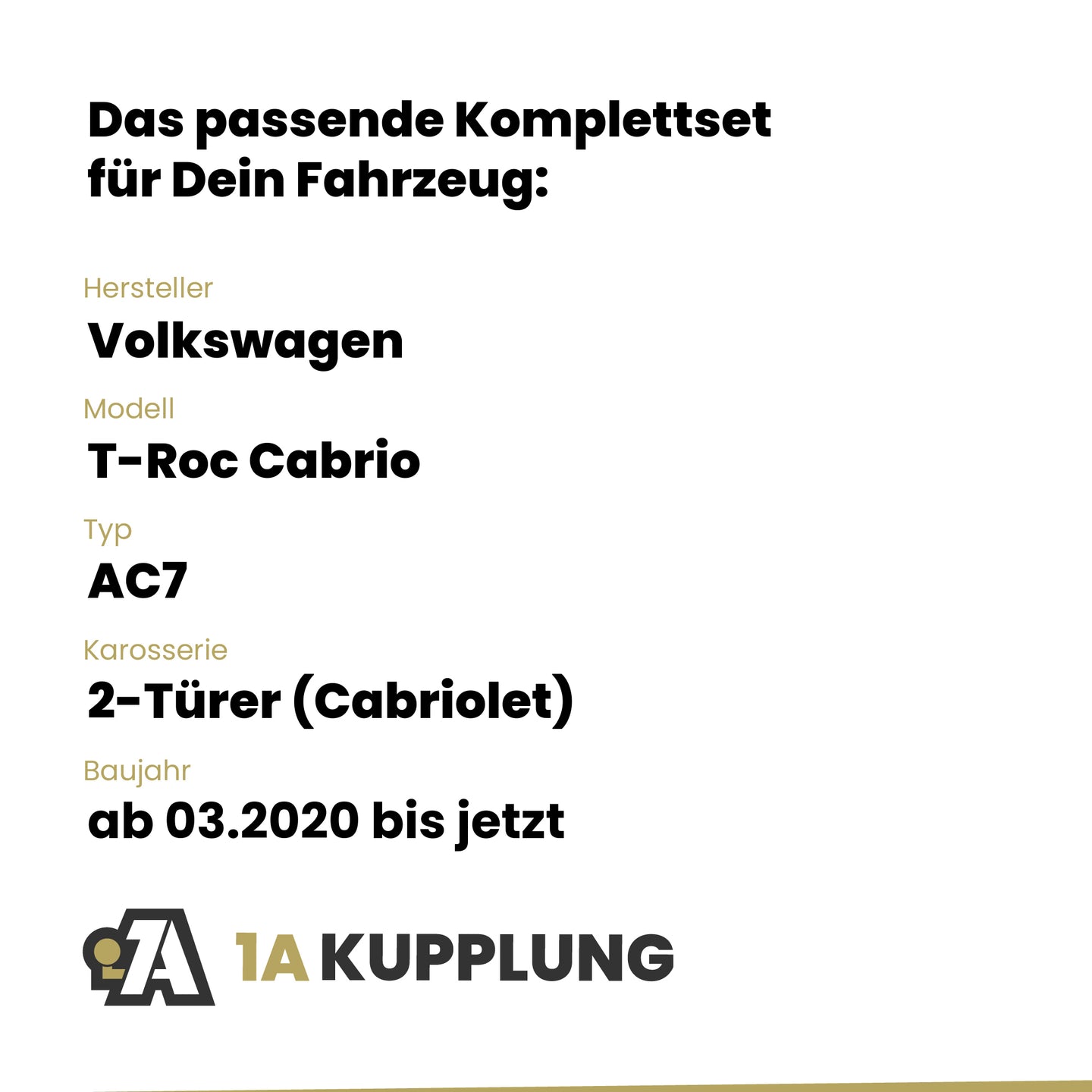 Passt zu VW T-Roc Cabrio 2-Türer (Cabriolet), Baujahr ab 03.2020, Typ: AC7