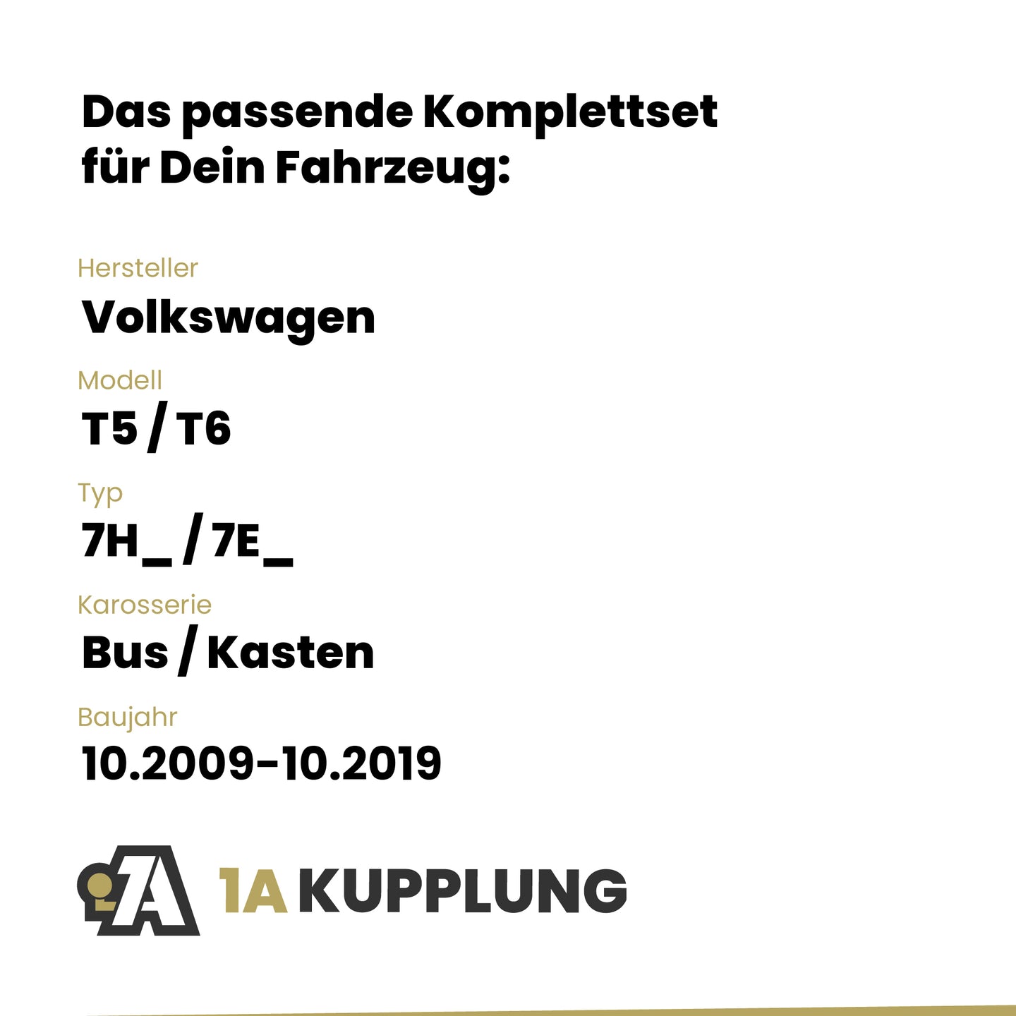 Passt zu VW T5 / T6 Bus / Kasten, Baujahr 10.2009-10.2019, Typ: 7H_ / 7E_